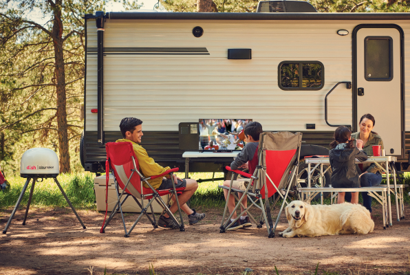 DISH Outdoors is TV that travels with you. It’s built for RVs with options for multiple TVs and in-motion viewing. Our antennas are portable and easy to set up, with no Wi-Fi required! Plus, only pay for the months you use – no activation, disconnect or setup fees.